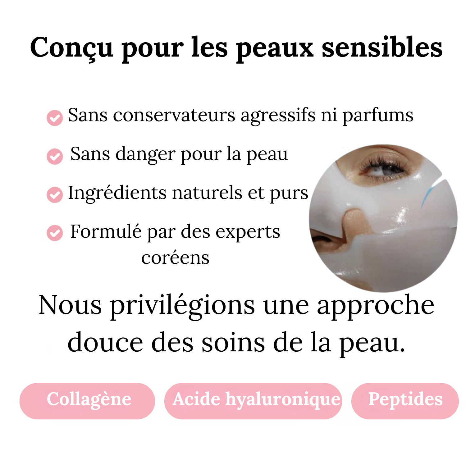 Oui, le masque Bio-Collagène est hypoallergénique et formulé avec des ingrédients non toxiques et non irritants, ce qui le rend adapté aux types de peau les plus sensibles.